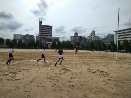 同じくグランドで、ラグビー部がしっかりと走っています。