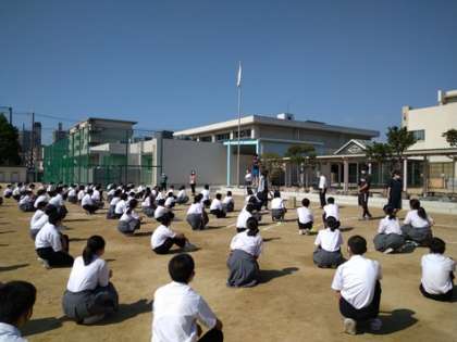 今日は青空のもと、間隔を取り、腰を落とさせ、配慮をし行いました。