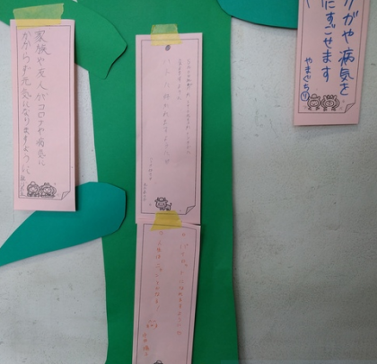 中には、「早くコロナが収まりますように…」の願い事を発見しました。