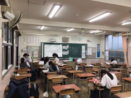 はじめてのテストしかも前日ということもあり、1年生の各クラスでは放課後遅くまで自習活動が行われていました。