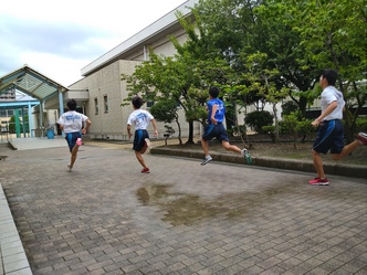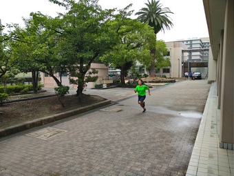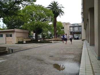 グランド状態が悪いので、中庭を使って練習をしています。