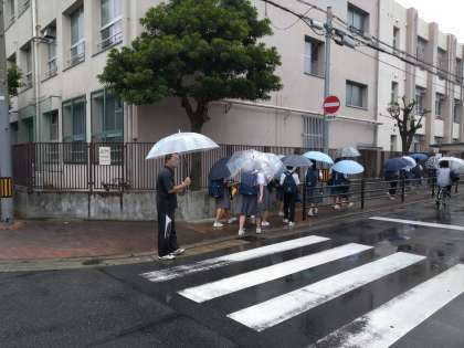 正門のところでは、傘の雨水を落とし、校内に持ち込まないようにしてくれています。ありがとう!