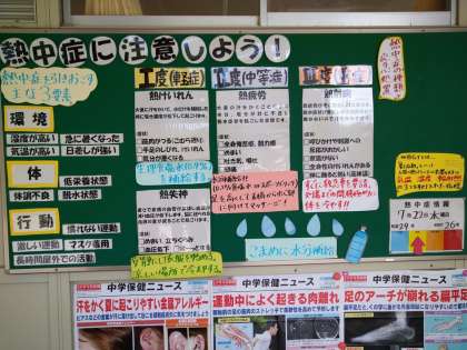 保健室前の掲示板に、たくさんの掲示物が貼ってありました。