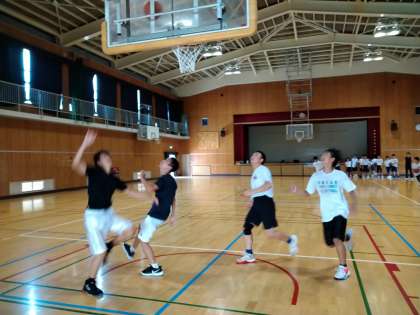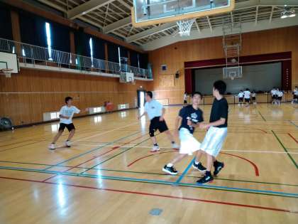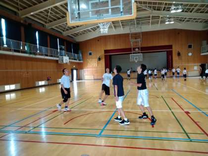 朝は体育館で男子バスケットボール部が活動をしていました。