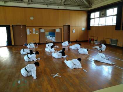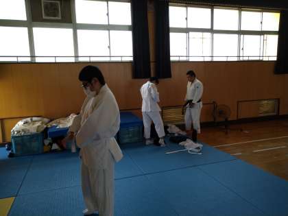 柔道部のみなさんが活動の準備をしていました。