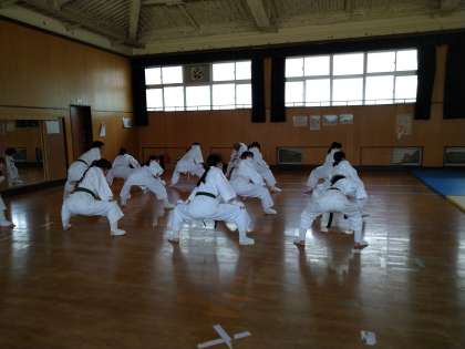 その隣で、少林寺拳法部が入念にストレッチをしています。