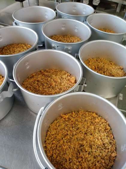 きょうの給食では「紅ざけそぼろ」が登場しました。紅ざけフレーク、いりごま、青のりを鍋で煎り、うすくちしょうゆ、みりん、料理酒で味つけした、ごはんによく合うふりかけ状のおかずです。お味はいかがでしたか?