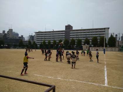 グランドではラグビー部が他チームとの合同練習をしていました。