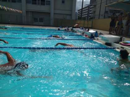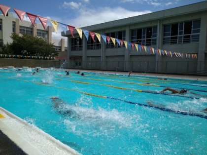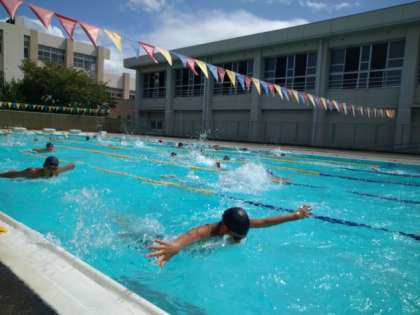プールでは、水しぶきをあげて、子どもたちは一所懸命に泳いでいました。