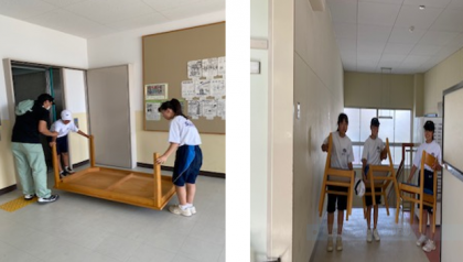古い机と椅子は、ソフトテニス部のみなさんに手伝ってもらって移動しました。