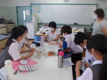 また、今年度は、『学校給食献立コンクール』に応募する予定です。最優秀賞の作品は、来年度の給食の献立として活用されるので、食材や栄養バランスなど楽しく相談しながら進めています。栄養教諭の田中先生にも来ていただいて、あふれるアイディアを聞いていただいたり、貴重なアドアイスをいただきました。