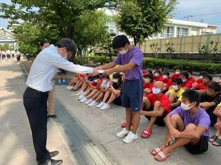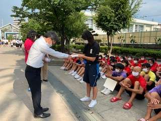 今日の練習前に、校長先生から大阪市大会の表彰をしてもらいました!