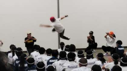 一二枚目 双子の生徒のシンクロやセンターの生徒のアクロバティックなダンス