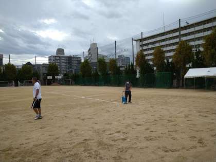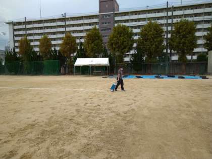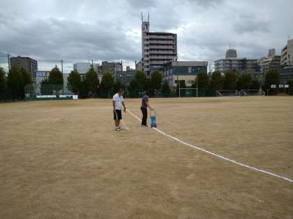 早朝よりグランドでは、お二人の先生方が、今日から始まる体育大会の学年練習に向けての準備をされていました。