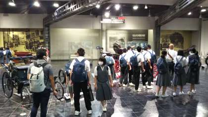 写真は トヨタ博物館です。 展示されている車が見えないくらい、しっかり見ています。