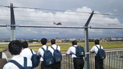 一時間ほどの見学時間でしたが、屋上の展望台では、自衛隊機のタッチアンドゴーや、ヘリの離陸を見ることができました。