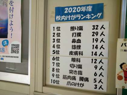 今回は、「熱中症対策」と「ケガ等での保健室利用状況」です。