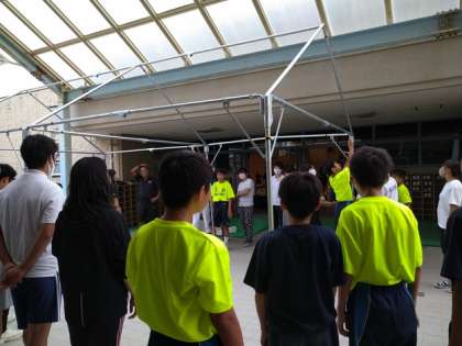 テント設営係の先生以外の先生も、多く参加しました。教育実習生も参加してくれました。