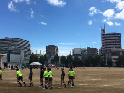 今朝の風景です。グラウンドではラグビーの大会が行われています。