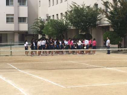 中庭コートではテニス部、体育館では男子バスケットボール部が頑張っていました!熱気と活気に満ち溢れています。