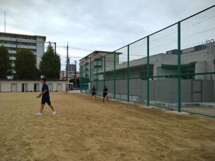 陸上部、ラグビー部が朝から熱心に練習をしていました。