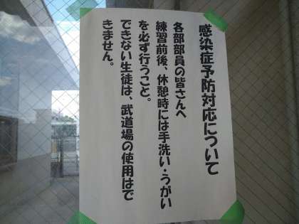練習前に手洗いをキチンとし、練習に取り組んでいます。