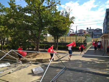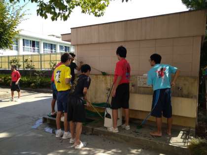 午前中は練習。午後からは、明日の2ブロック大会のための会場準備をしてくれています。会場の清掃・準備をていねいにしてくれています。
