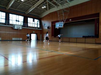 体育館では女子バスケットボール部が一所懸命に、活動をしていました。