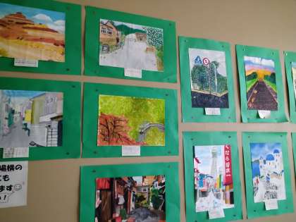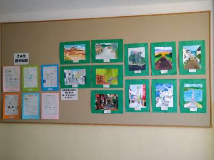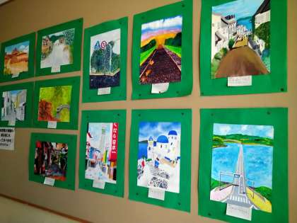 廊下の掲示物に、2年生の美術科作品が展示していました。