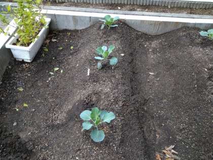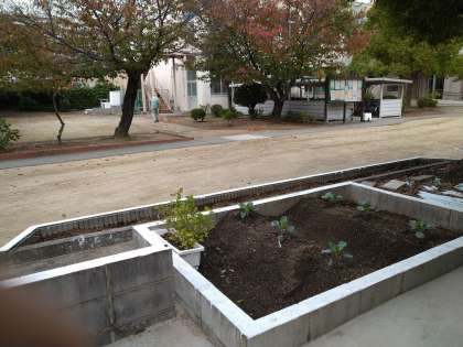 畑の向こう側には、管理作業員の方が、中庭の清掃をしてくださっています。