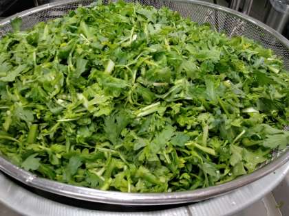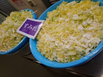 白菜38.7g、きくな13gを使い、洗浄、切裁すると49.3gになります。