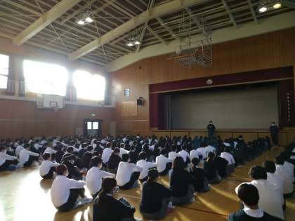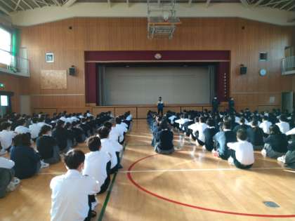 学年主任の小林先生からは、あいさつを含め、自分自身がしっかりと行う気持ちを持ってください。集団としてはできているように感じられますが、一人ひとりが意識を持って行動すれば、もっとできる集団になるのではないでしょうかと、73期生の大いなる可能性に期待を寄せる内容の講話でした。