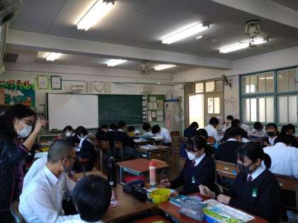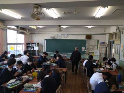 本日6限目、2年生は3年生に贈る「コルクボード」を作成いたしました。
