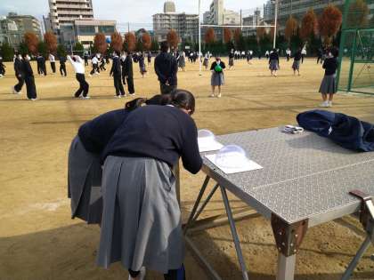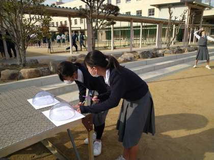 ボール遊びの横で、理科の学習をしている3年生の姿が…。