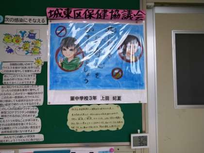 もう1つ、城東区保健協議会に展示されました本校生徒の作品が展示しています。