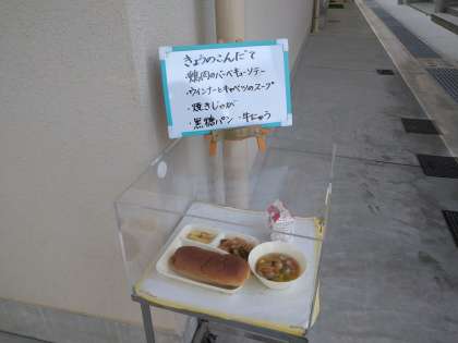 本日は、鶏肉のバーベキューソテー・ウインナーとキャベツのスープ・焼きじゃが・黒糖パン・牛乳でした。