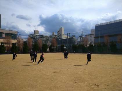 グラウンドでは、寒さに負けず元気にボール遊びをしている姿が…。