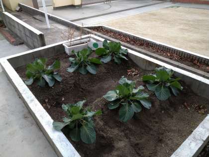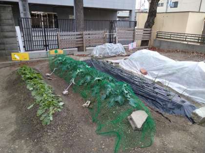 この3連休、非常に寒い日が続きました。校庭の池には氷が張ってありました。その横の畑には、寒さに負けず、すくすくと育っているたくさんの野菜があります。お休みの日にも、手入れをしてくださっている先生の姿がありました。ありがとうございます。