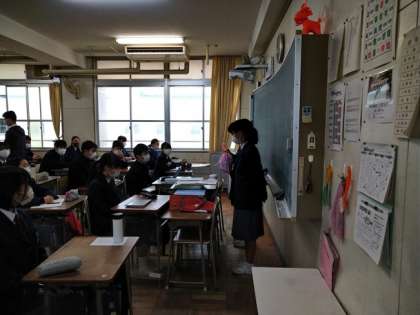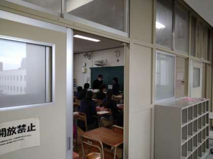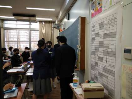 昨年までなら、全体の場での受け渡しを行っていましたが、今年度はコロナ禍の対応として、2年生の各クラスの委員長が、それぞれ3年生の教室に足を運び、メッセージを添えて、コルクボードを渡しました。