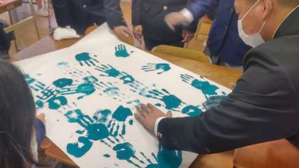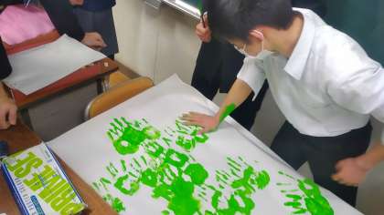 なかなか絵の具が落ちず、みな苦戦していましたが、