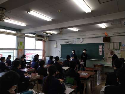 校長先生からは、まず最初に、1年生家庭科部の「給食献立コンクール」優秀賞の受賞報告がありました。おめでとうございます。