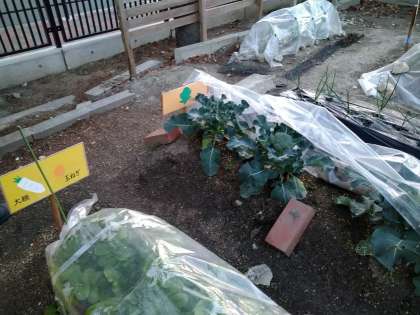 キャベツをはじめ、大根、玉ねぎとたくさんの野菜が育っています。