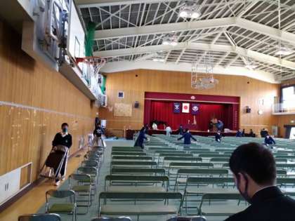 体育館設営は、主に委員長と体育委員が行ってくれました。整備委員と美化委員は、体育館周辺や正門付近を丁寧に清掃をしてくれました。