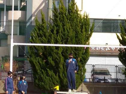 球技大会の結びに、学年主任の小林先生からお褒めのことばをいただきました。