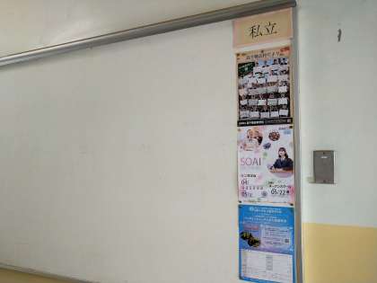 職員室横の通路の所に、進路専用の掲示板があります。まだまだ、枚数は少ないですが、これから進路関係のポスターをどんどん貼っていきます。