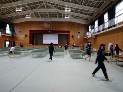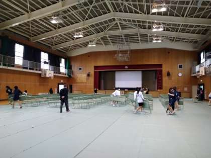修学旅行保護者説明会を終え、女子バレーボール部と女子バスケットボールが会場の片づけをしてくれました。