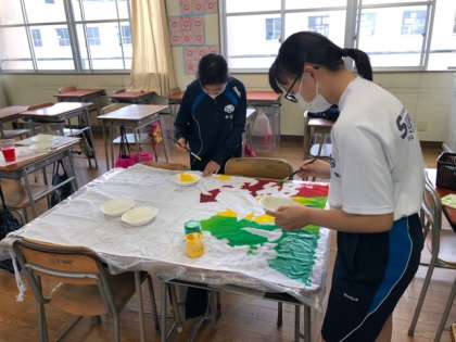 放課後に各学級3人限定で学級旗の作成を行いました。