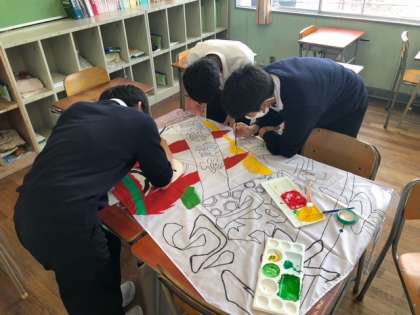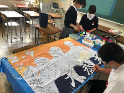 本日も放課後、各クラスで学級旗の作成に取り組みました。