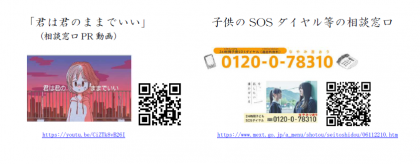 現在、新型コロナウイルス感染症が広がる中で、皆さんの中には不安を抱えている人がいるかもしれません。新学期の始まり、春休みやゴールデンウィークの終わりなど、不安や悩みを抱えていても、決して一人ではありません。ご家族、先生、周りの友達、誰にでもいいから悩みを話してほしい。私をはじめ、周りの大人は皆さんの味方です。