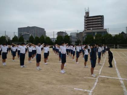ラジオ体操では、みんなで揃える意識を持ち、行進は、力強く!